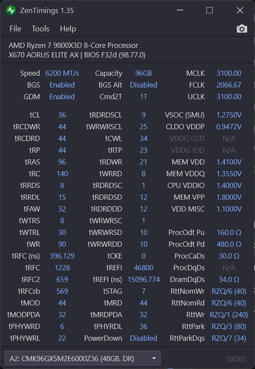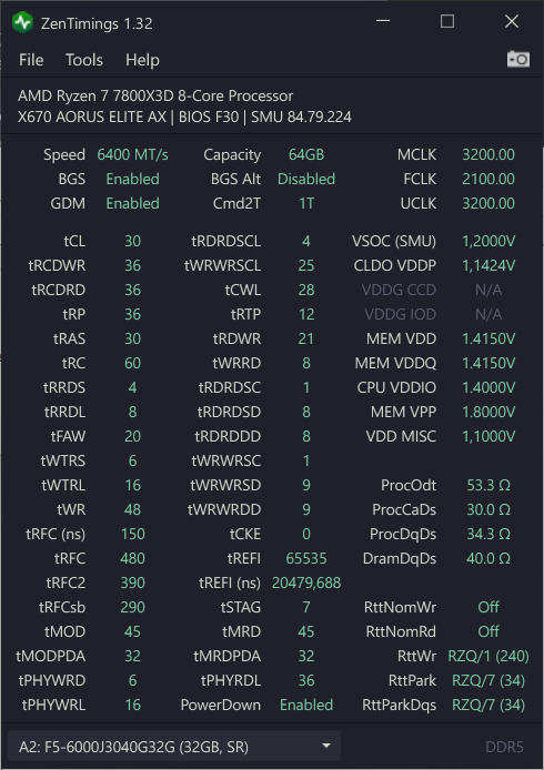 5050MHz to max co wyciąga 7800X3D - chyba że masz mobo z dwoma generatorami to można szyną jeszcze kręcić możesz trochę powlaczyć z FCLK i podciągnąć ram - choć przy X3D to nie ma aż tak dużego znaczenia później proca zmieniłem na 9800X3D i trochę jeszcze podciągnałem pamieci a następnie olałem temat ostrego OC pamieci po przeczytaniu -> https://www.techpowerup.com/review/g-skill-trident-z5--neo-rgb-ddr5-6000-32-gb-cl26/16.html i prawie stock trzymam1 point